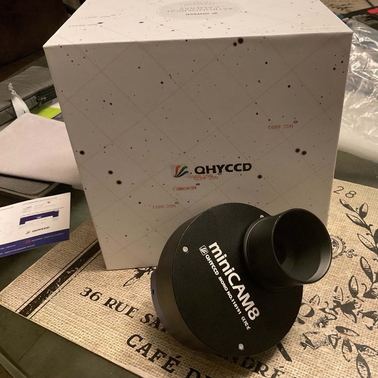 Today I picked up a QHYCCD MiniCam8 mono camera which I had ordered at the beginning of the year. The forecast looks decent, and if it holds true I’ll catch a few hours of M63, the Sunflower Galaxy. Eventually I want to accumulate about 20-24 hours of LRGBHα, so it’ll be a multi-night project from deep in the city glow, and tonight’s run might turn out to be a short test of the concept. If the city approach looks viable, I’ll try a more-or-less matching multi-night run from the Saugeen (Bruce) Peninsula for comparison, but with a newer version of the C9.25 I have in the city. I’ll try this even if the city run doesn’t work though. The newer scope has both a better (automatic) focuser and improved optics, so apart from the better sky on the Peninsula I’m hoping for an improved work routine. So far short runs haven’t been satisfying except on bright objects, and I want to dig deeper into the sky.